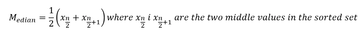 The median is also referred to as a positional measure, since it is based on the position of values in an ordered set of data, rather than their magnitudes. What does this mean? To find the median, the data must first be ordered in ascending or descending order. For an odd number of observations, the median is the value that is exactly in the middle. But what about when the number of observations is even? For such a variable, it is also possible to determine the median, namely by calculating the arithmetic mean of the two middle values.