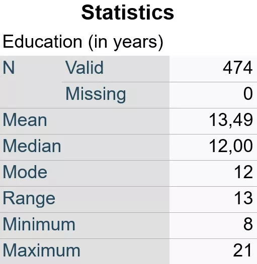 Fig. 2: An example of the result table of the Frequencies procedure showing, among other things, the median