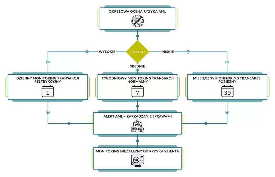 Monitorowanie i ocena ryzyka prania pieniędzy umożliwia zarządzanie potencjalnymi zagrożeniami poprzez dopasowanie poziomu nadzoru do konkretnego klienta.