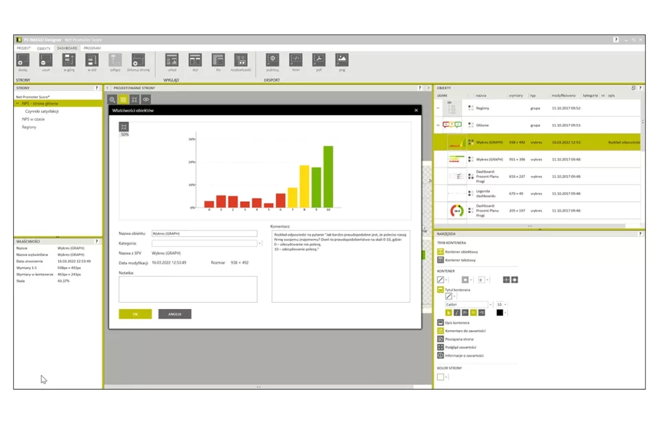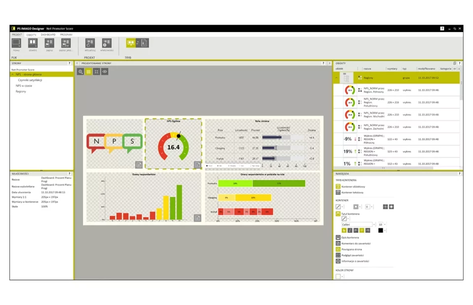 Czytelne tabele i przejrzyste wykresy ułatwiają interpretację wyników. PS IMAGO PRO zawiera bogaty zestaw podstawowych i niestandardowych wykresów oraz atrakcyjnych wizualizacji. Oferuje również szeroką gamę dashboardów przygotowanych specjalnie z myślą o wsparciu procesów decyzyjnych w oparciu o realizację KPI.