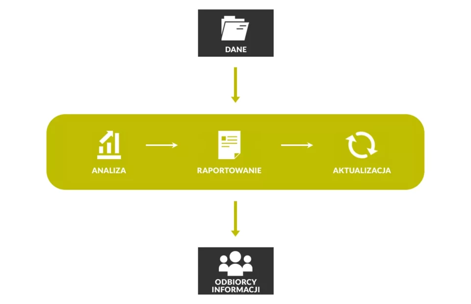 Sprawna dystrybucja i automatyczne odświeżanie informacji jest kluczem do efektywnego działania rozwiązań Business Intelligence. Wszystkie zadania od pozyskania danych, poprzez analizy, przygotowanie raportu i publikację wyników mogą zostać przeprowadzone w pełni automatycznie - na żądanie lub też w oparciu o harmonogram.